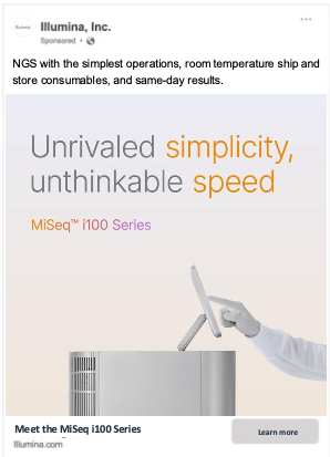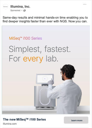 Illumina, a biotech company, was launching a new genomic sequencer. The ease-of-use and accessibility of the instrument was revolutionary. So the awareness campaign embraced the power of simplicity and resulted in the most successful product launch ever.